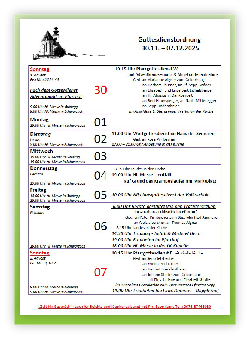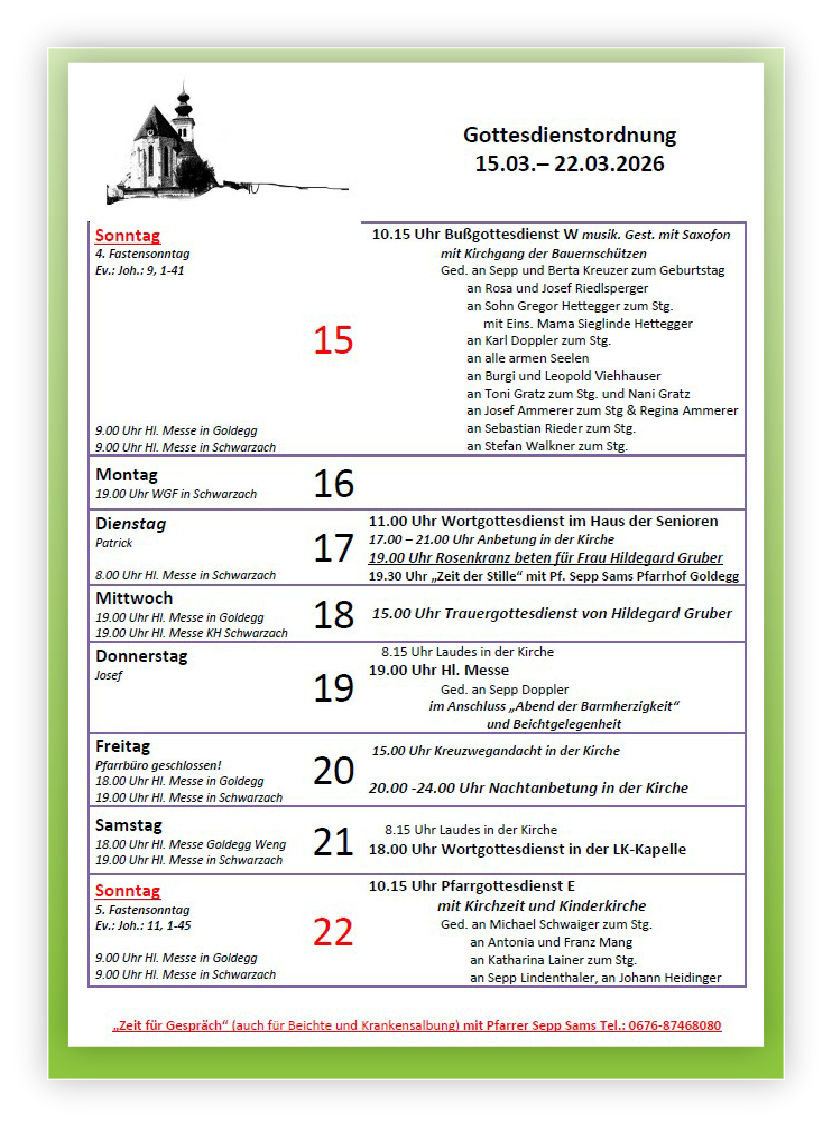 Gottesdienstordnung Goldegg